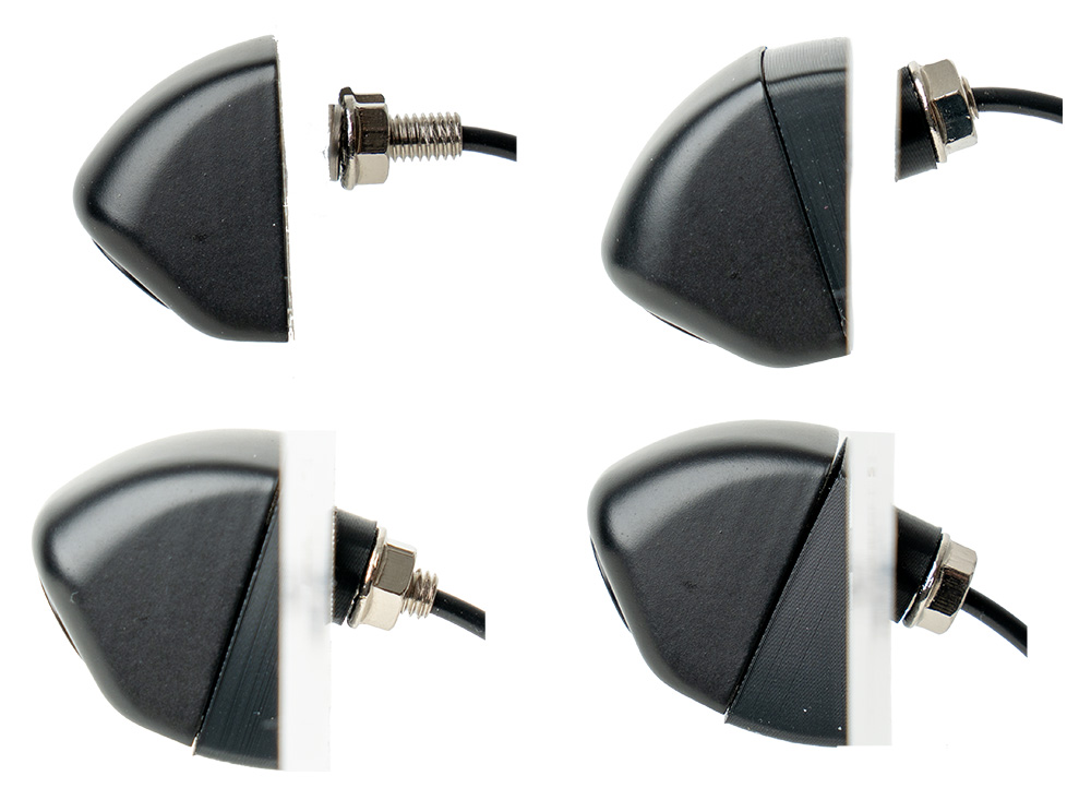 Normalt, ikke-speilvendt bilde. For montering i kjøreretning, f.eks i grillen.