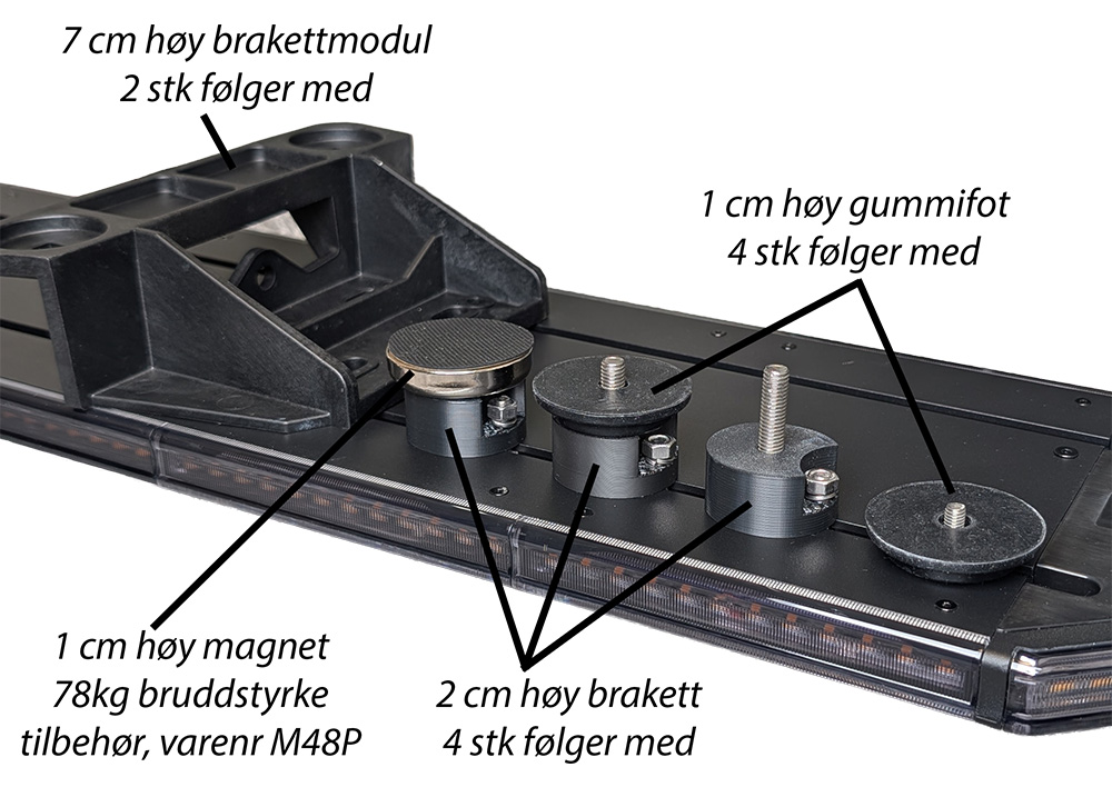 Festebraketter med høyde 1, 2, 3 og 7 cm følger med.