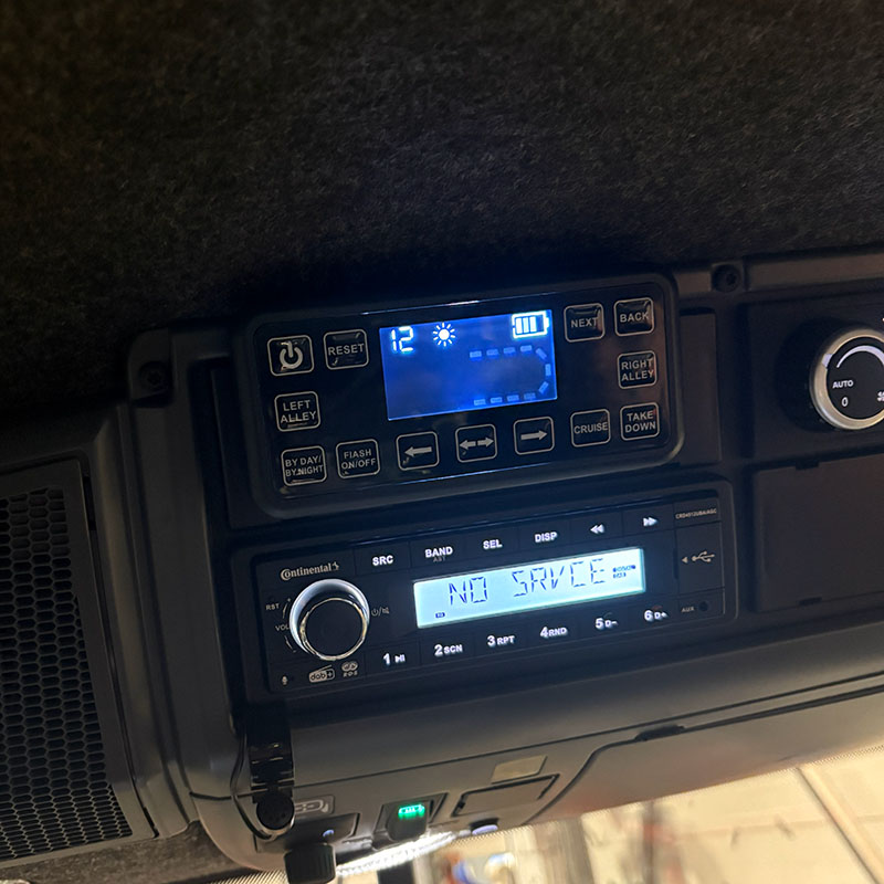 Fjernkontrollen kan knyttes til å styre en eller flere varsellysbjelker samtidig. Fjernkontrollen går på 4 stk AA-batterier (følger ikke med).